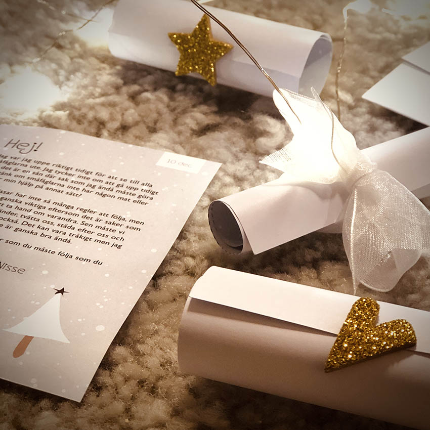 Här finner ni en busig liten tomtenisse som alltid har hyss på gång men ni kanske får i uppdrag att även busa för nissen själva, spännande!